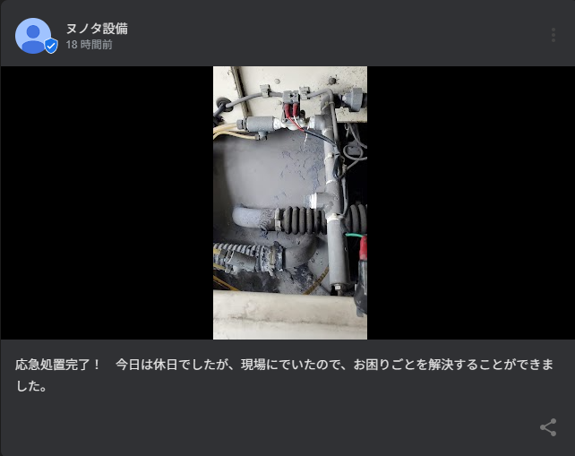 そんな時は、まずヌノタ設備へご連絡ください。地域に根ざした設備屋だからこそできる、迅速な初動対応をお約束します。