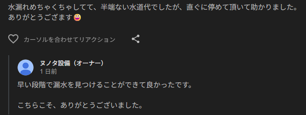先日、まさに「水漏れがひどく、半端ない水道代になってしまった」というお客様からSOSをいただき、急行いたしました。 すぐに調査を行い、早い段階で見えない漏水箇所を特定。その場でピタリと水漏れを止めることができました。お客様にも「直ぐに停めて頂いて助かりました」と安堵していただけて、本当に良かったです。